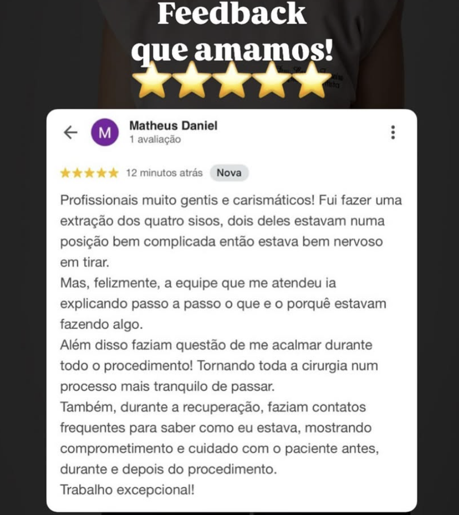 Aqui você sairá de nossa clínica com seu novo sorriso no rosto!. É importante lembrar que nesse período ainda é extremamente importante seguir as recomendações do profissional que realizou o procedimento.
